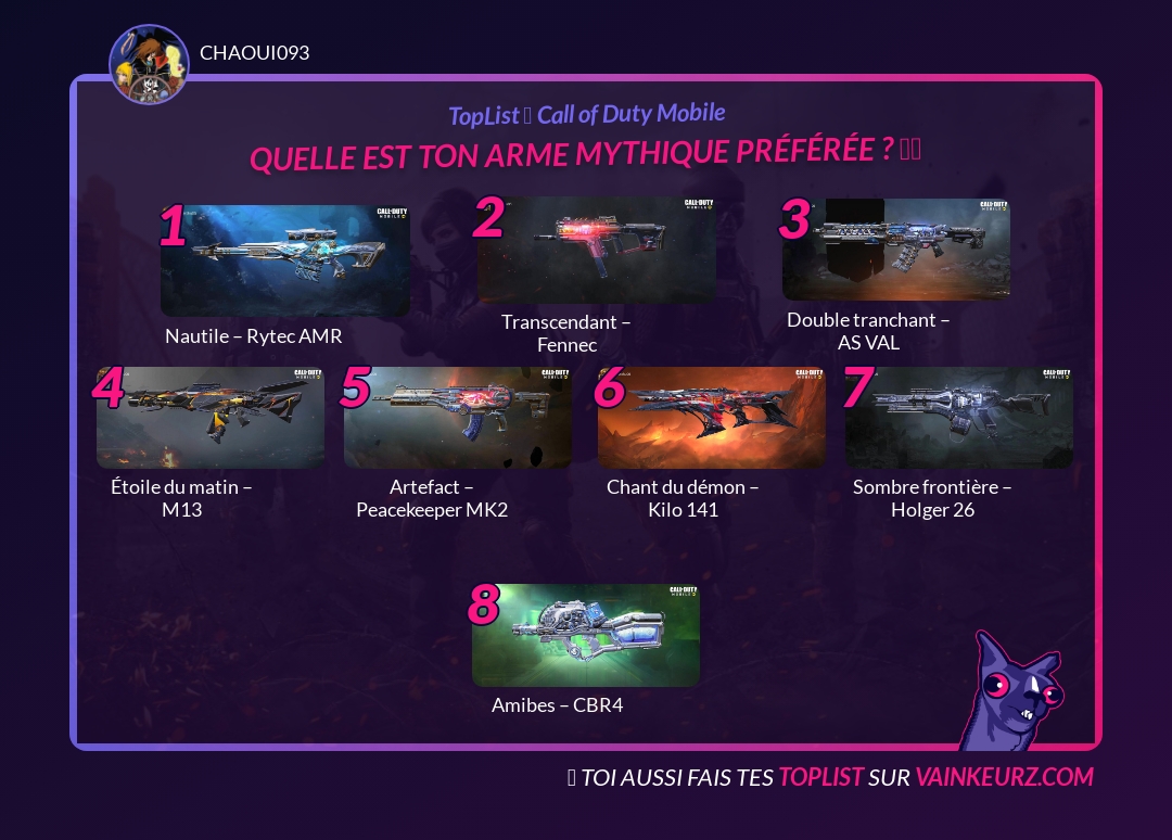 Qual é a tua arma mítica favorita? 🔫🥇
