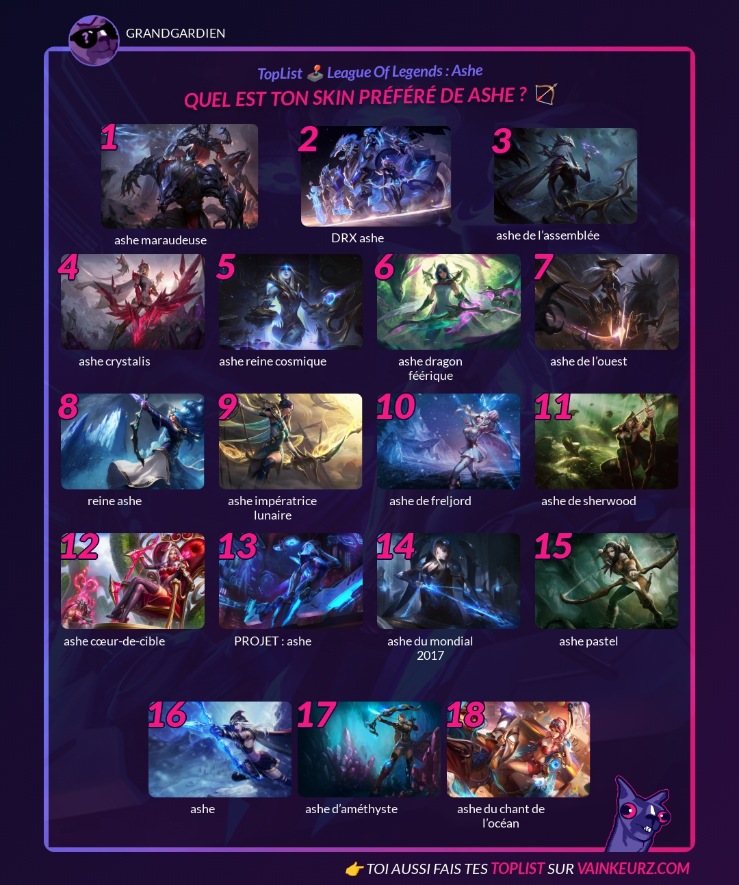 Quel est ton skin préféré de Ashe ? 🏹
