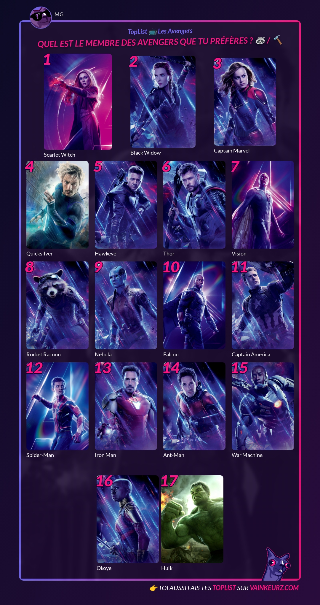 Quel est le membre des Avengers que tu préfères ? 🦝 / 🔨