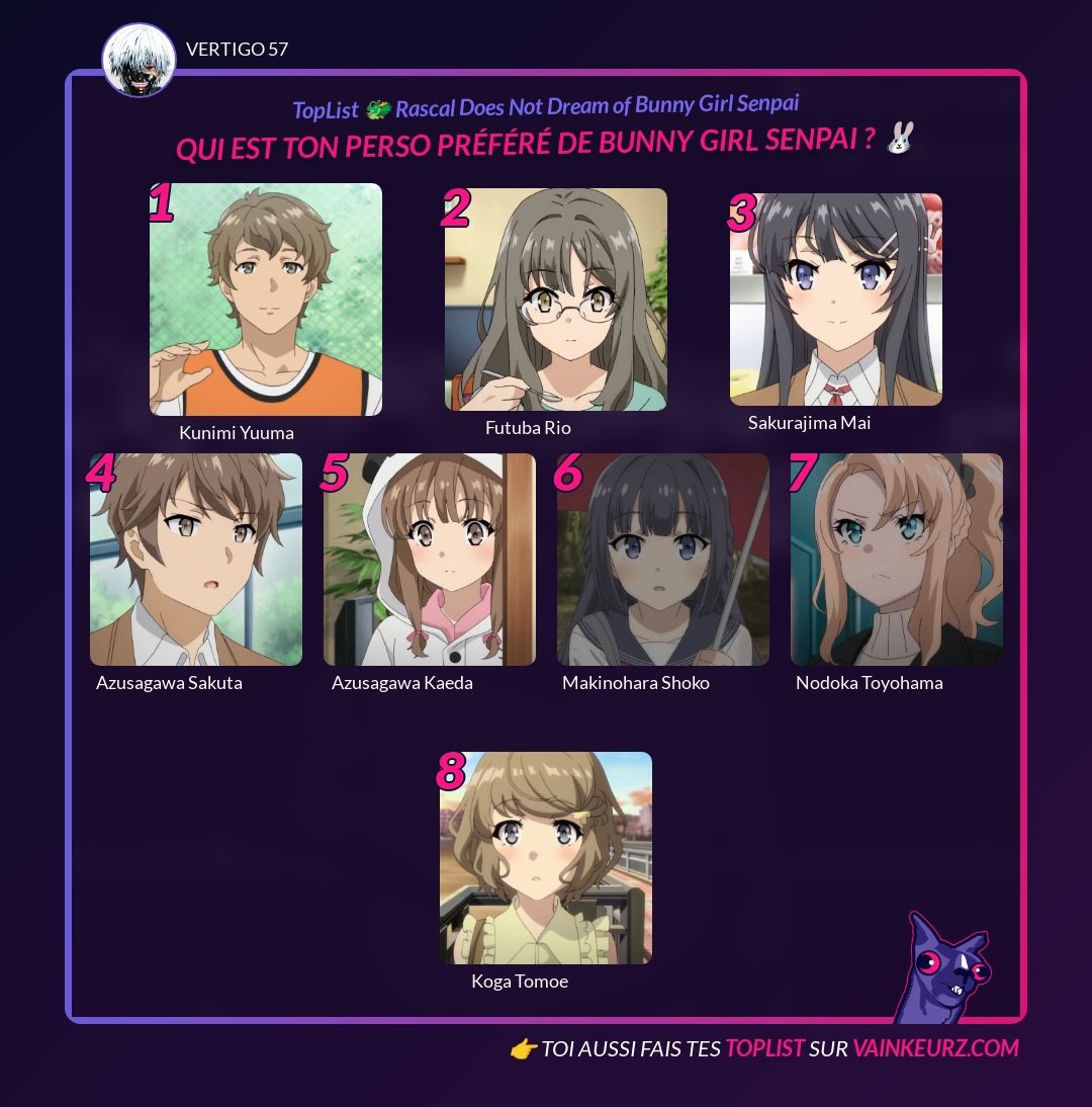 Qui est ton perso préféré de Bunny Girl Senpai ? 🐰