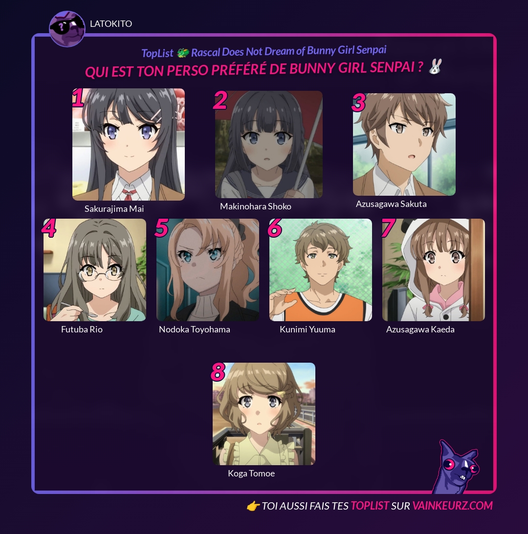 Qui est ton perso préféré de Bunny Girl Senpai ? 🐰