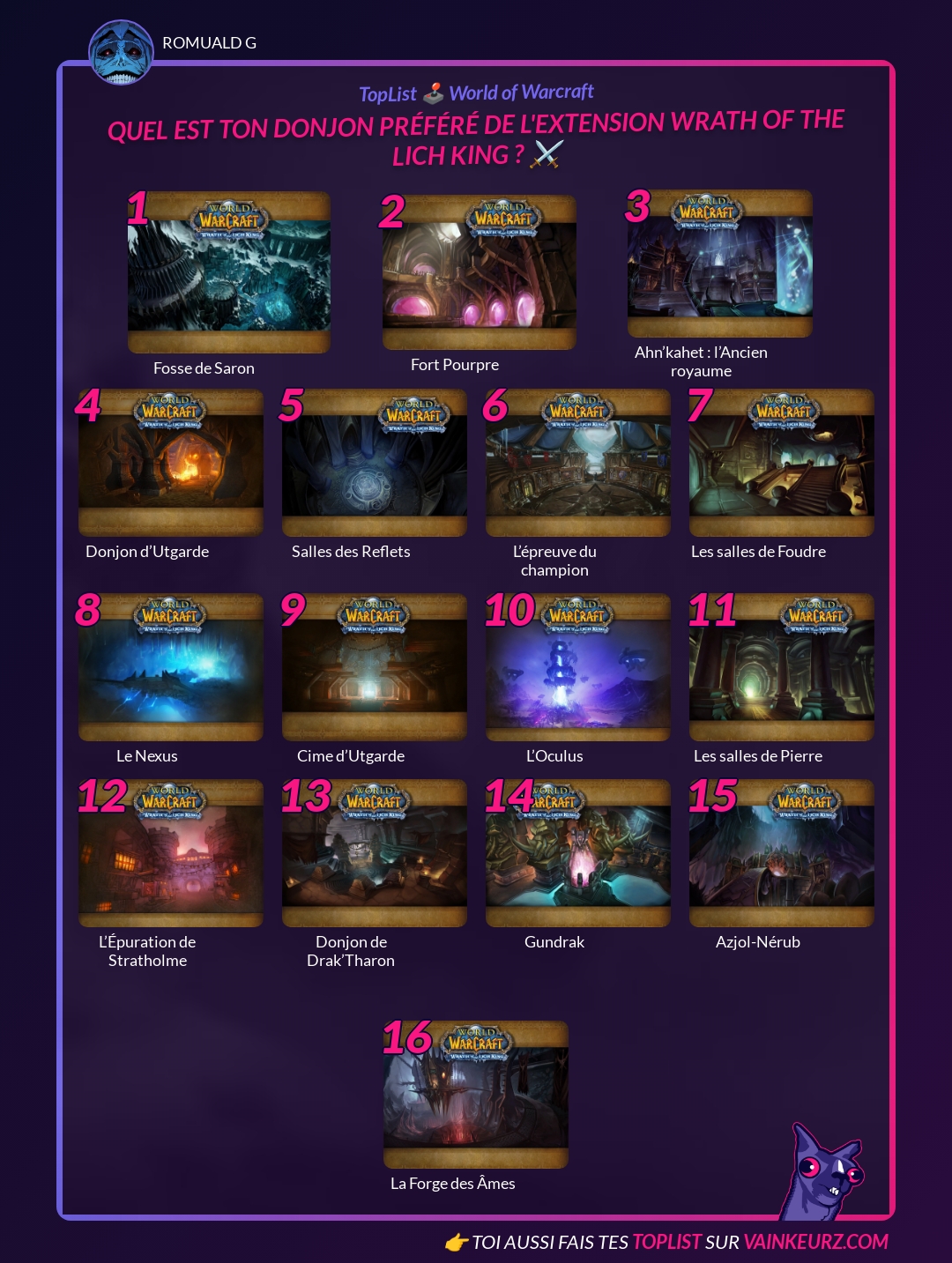 Quel est ton donjon préféré de l'extension Wrath Of The Lich King ? ⚔️